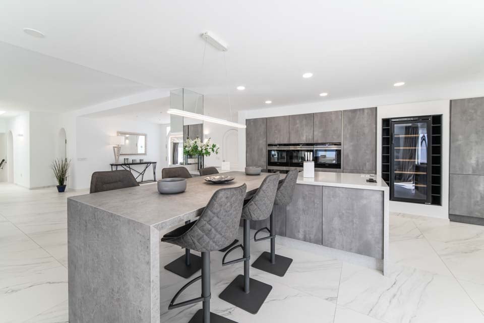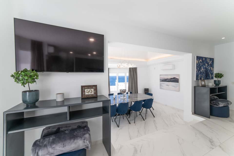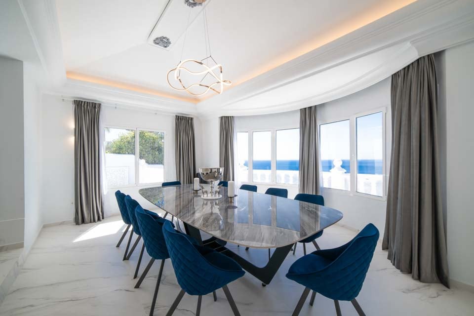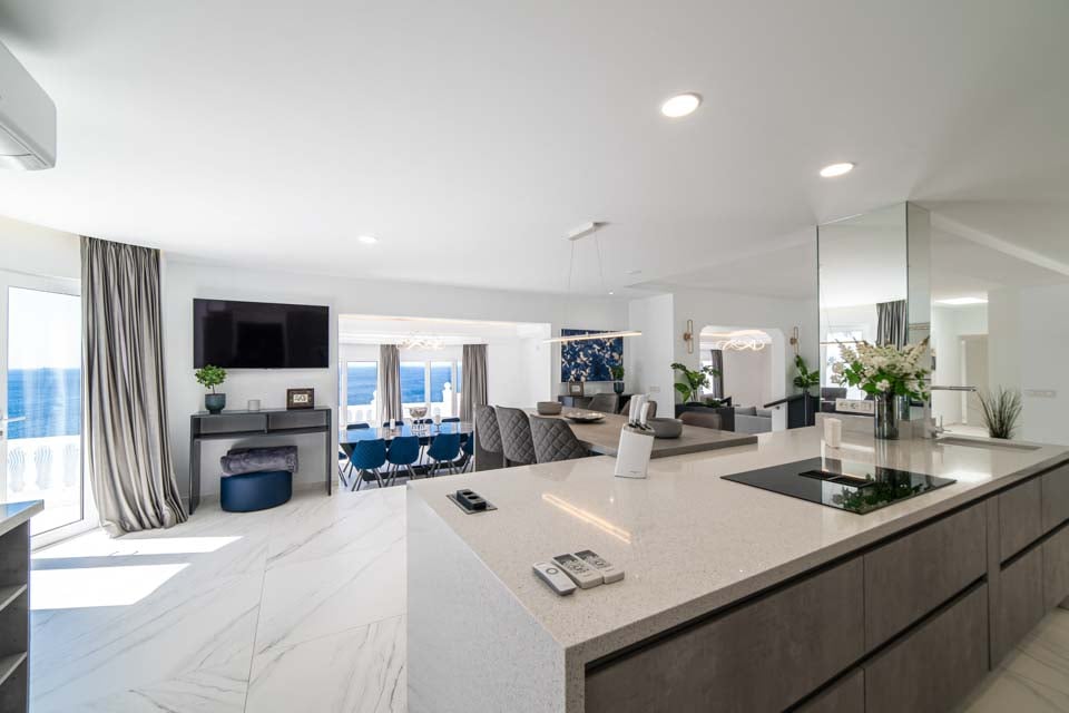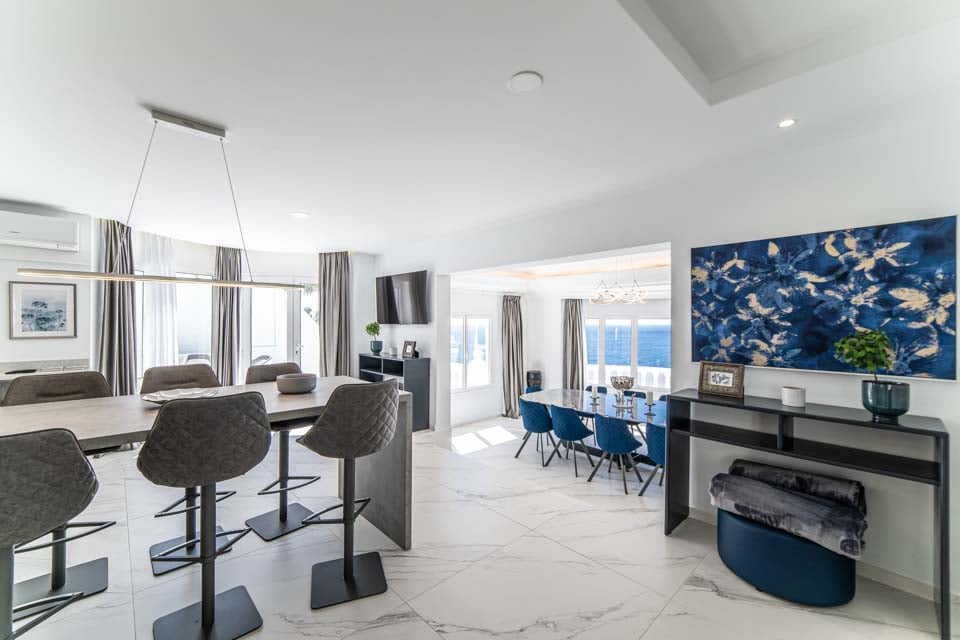 Elk van de zes ruime slaapkamers beschikt over een eigen badkamer en airconditioning, waardoor elke gast een privé-oase ervaart. De volledig uitgeruste keuken is een droom voor elke chef-kok, compleet met ontbijtbar, wijnkoeler en een spectaculair uitzicht op zee. Hierdoor is het bereiden van elke maaltijd een plezier. De elegante eetkamer biedt bovendien een onbelemmerd uitzicht op de oceaan, ideaal voor het ontvangen van gasten of voor een ontspannen maaltijd met familie en vrienden.