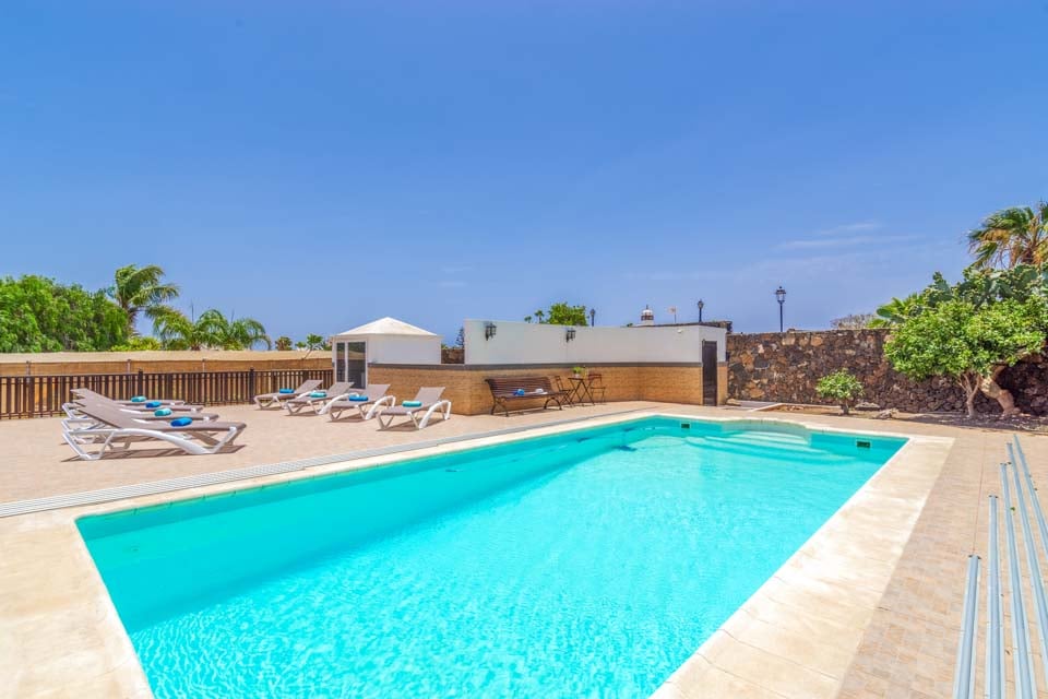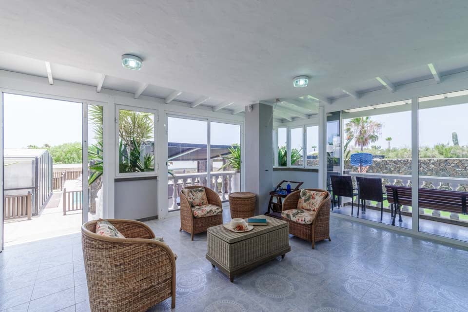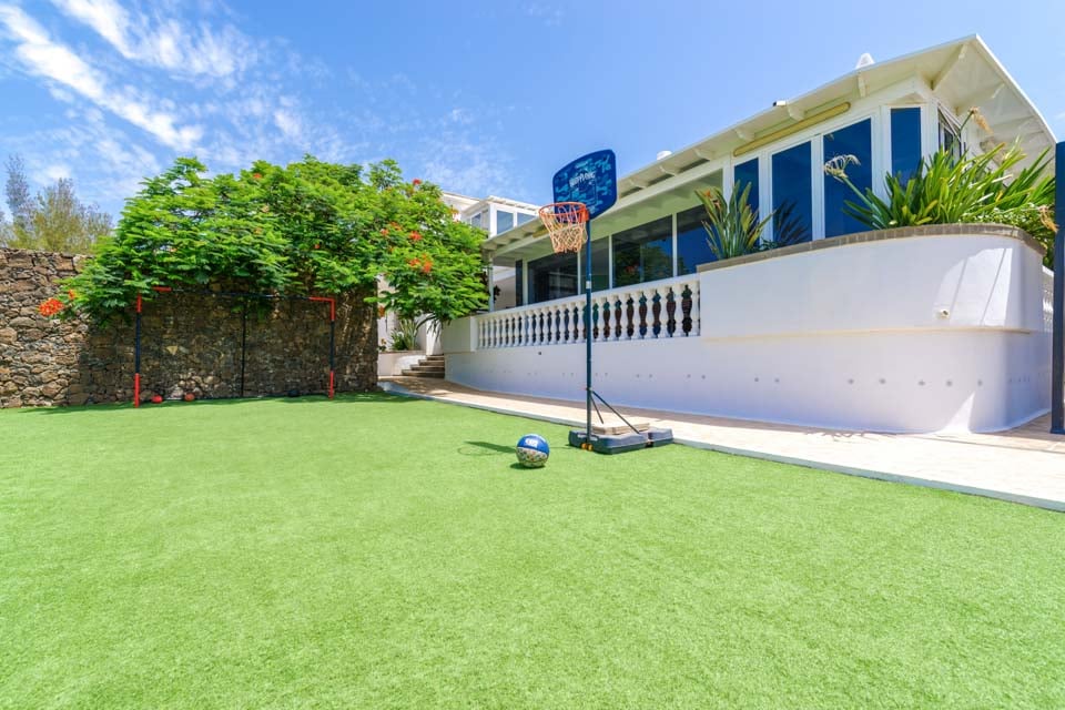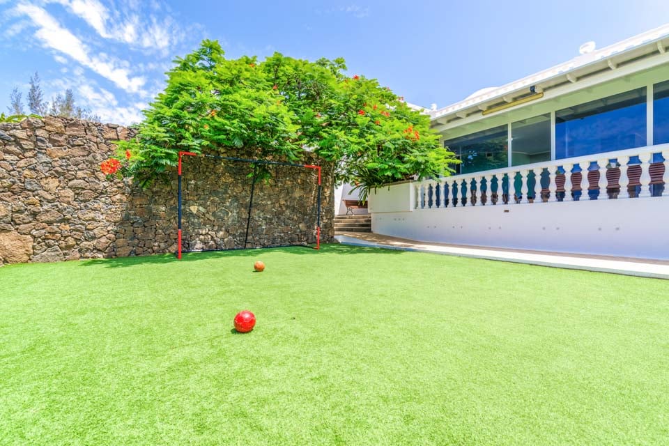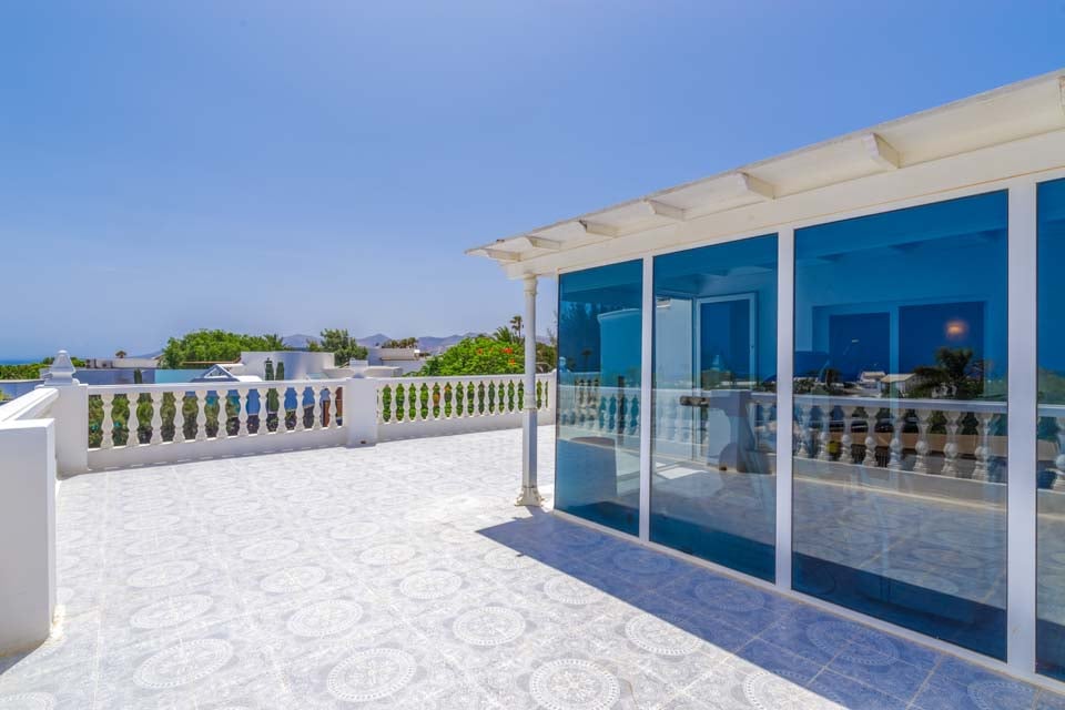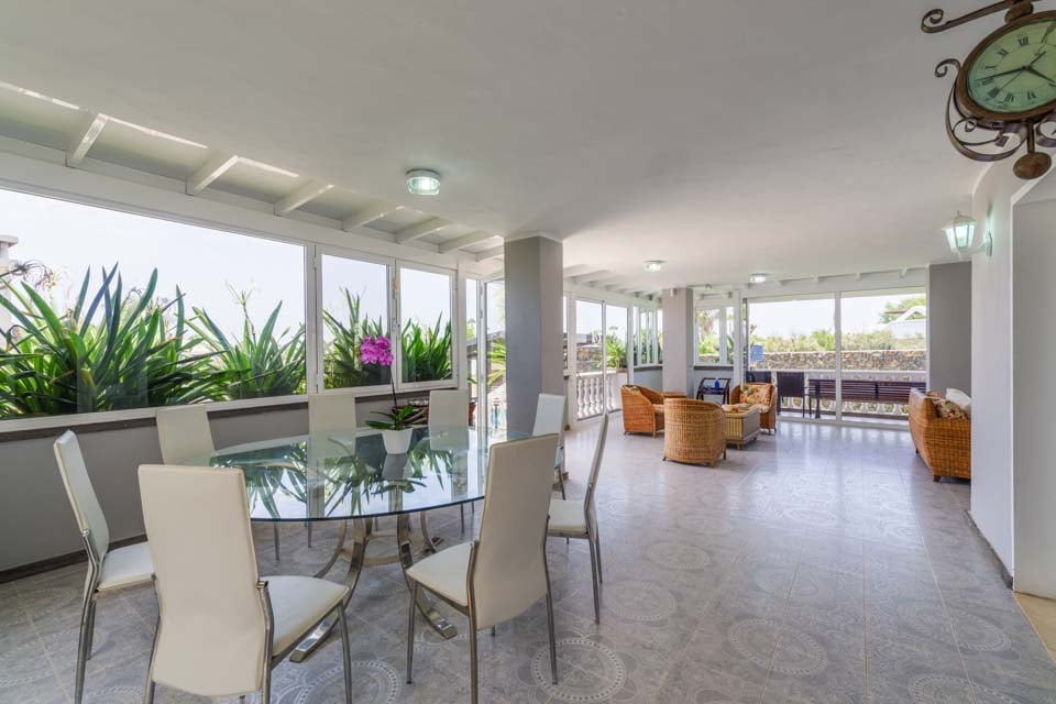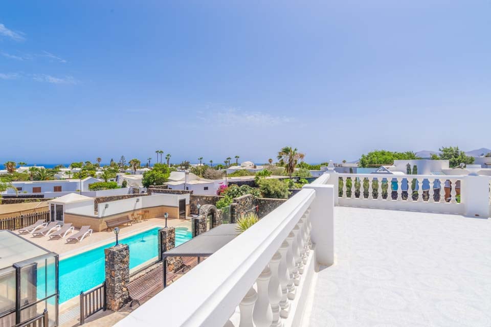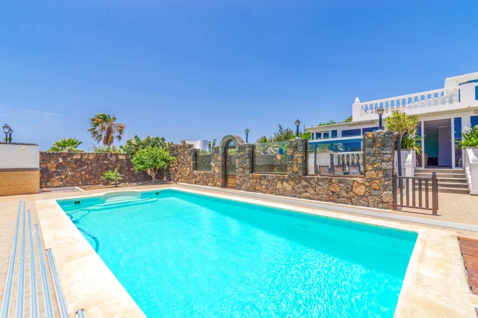 Villa Cervera is een mooie grote, ruime villa gelegen in het chique 'Los Mojones'-gebied van Puerto del Carmen. Of u nu lekker wilt ontspannen bij het zwembad of spelletjes wilt spelen met uw gezin, Villa Cervera is een geweldige plek om een onvergetelijke vakantie door te brengen. Het beschikt over een eigen fitnessruimte en diverse balspellen voor de actiezoekers. Als u liever lekker achterover leunt en geniet van de zon, kunt u genieten van het fantastische 12 meter lange zwembad met ligstoelen ernaast. Villa Cervera ligt op een prachtige locatie en biedt een schitterend uitzicht vanaf het balkon op de eerste verdieping. Overdag kunt u de zee zien en 's avonds kunt u genieten van de zonsondergang. In de buitenkeuken staat een stenen barbecue, zodat u heerlijk kunt koken en in de mooie eethoek in de openlucht kunt genieten van een feestmaal met uw dierbaren. De prachtige, grote serre heeft meerdere openslaande deuren, uitzicht naar buiten en de aangelegde tuin, waardoor het binnen- en buitenleven samenkomen. Er is genoeg ruimte voor het hele gezin. Elke verdieping heeft een eigen woonkamer en vier slaapkamers, die allemaal voorzien zijn van airconditioning voor uw comfort. Villa Cervera heeft genoeg te bieden om u te vermaken, maar als u er toch op uit wilt, bent u niet al te ver van het prachtige zandstrand. Gelegen tussen de oude en nieuwe stad van Puerto del Carmen, heeft u een onbeperkte keuze aan bars, restaurants en winkels in de buurt.