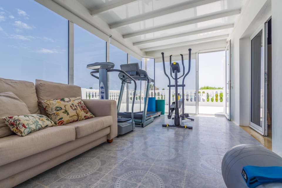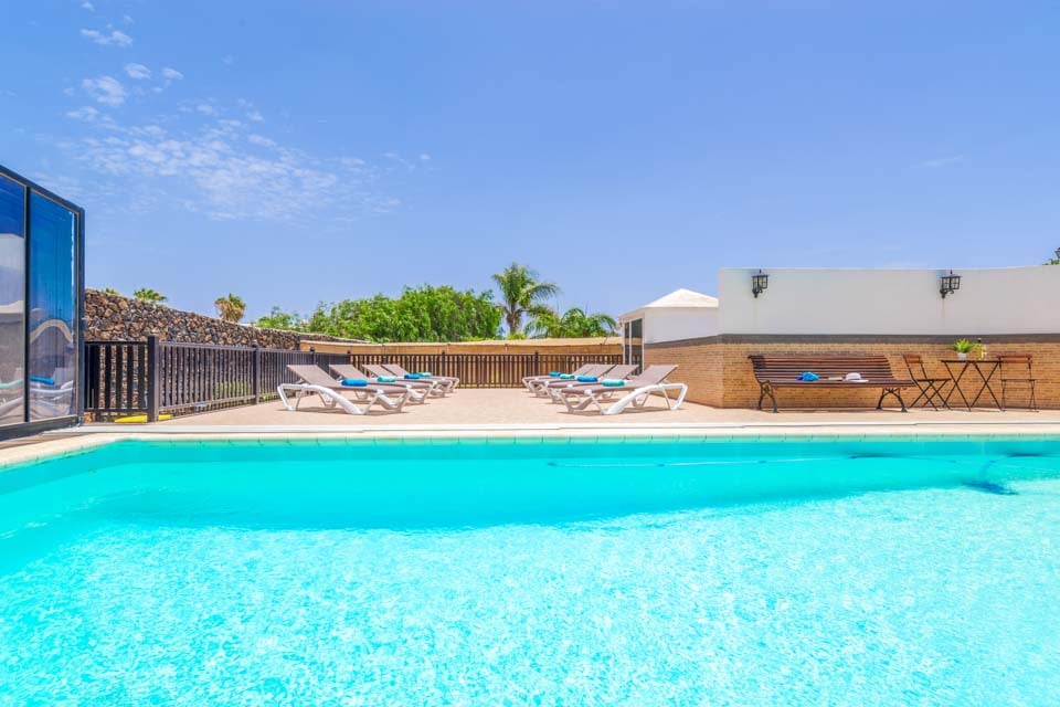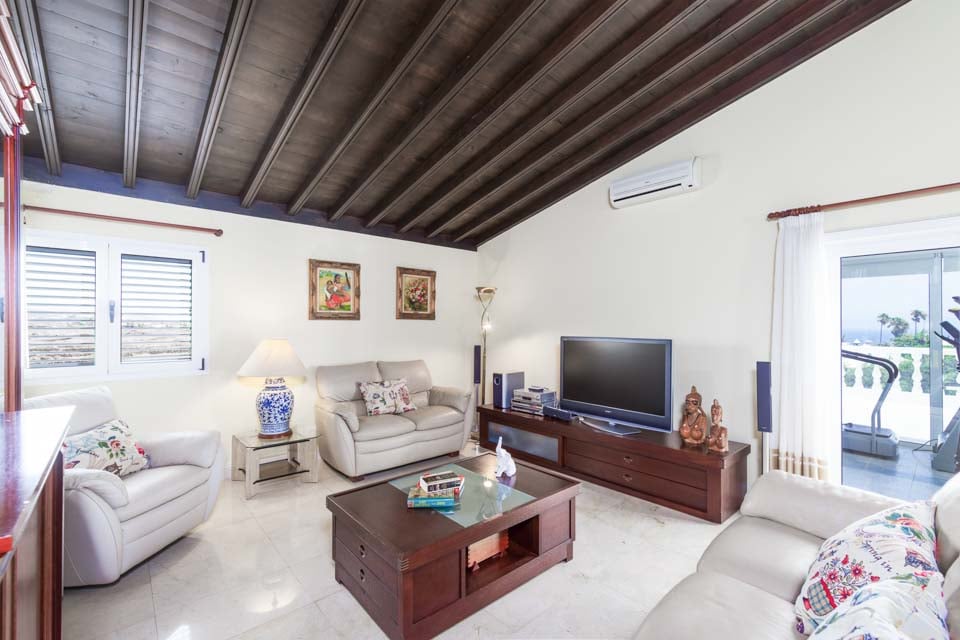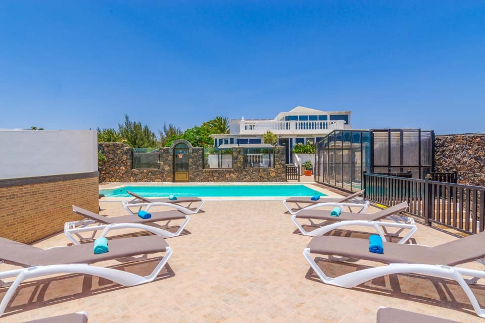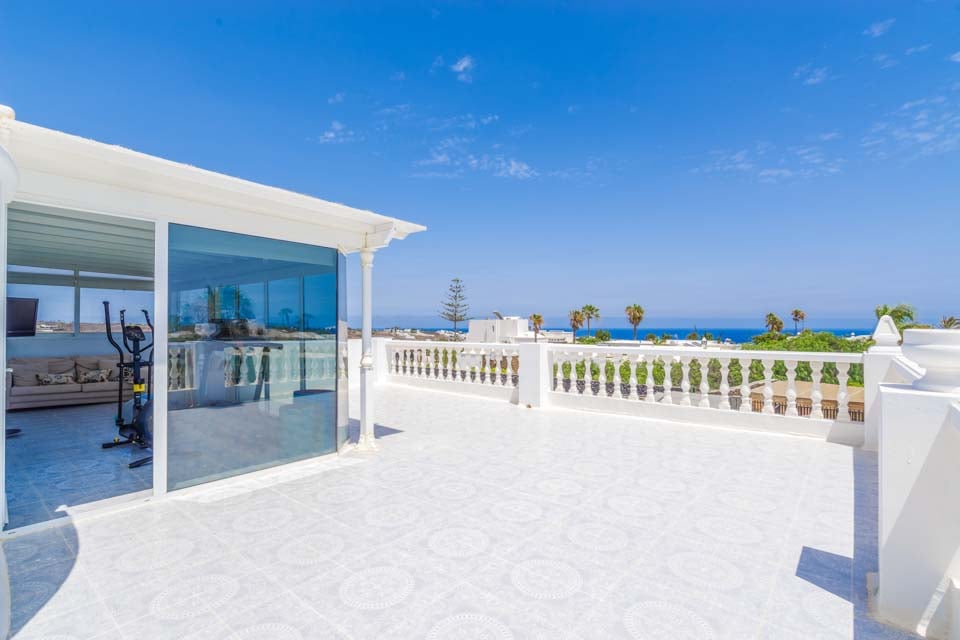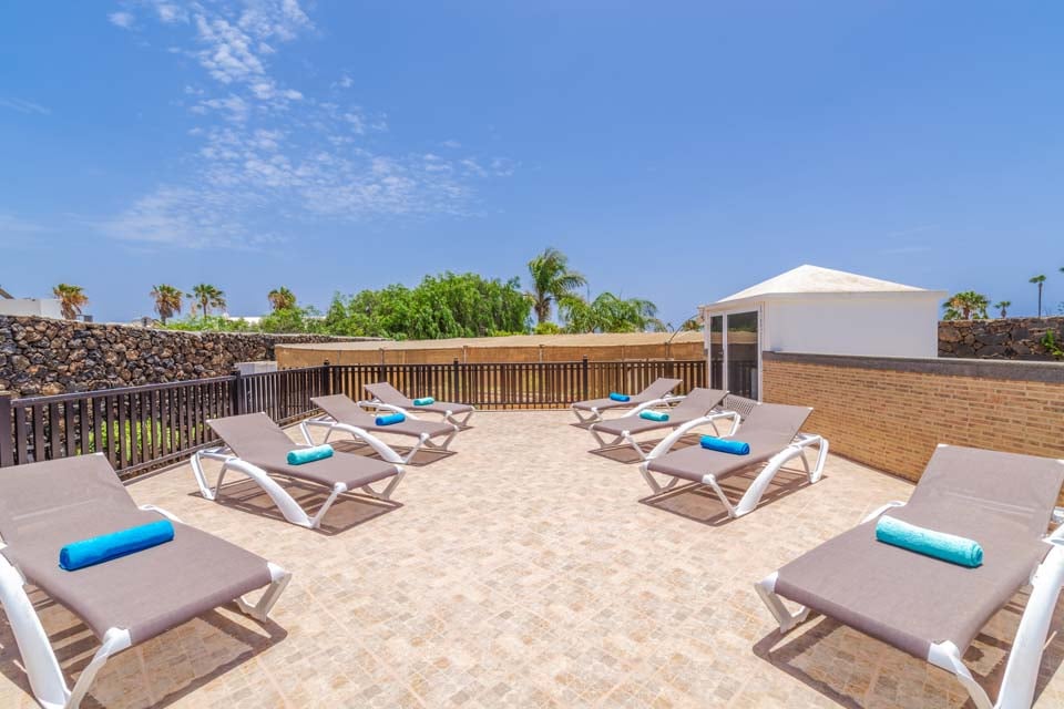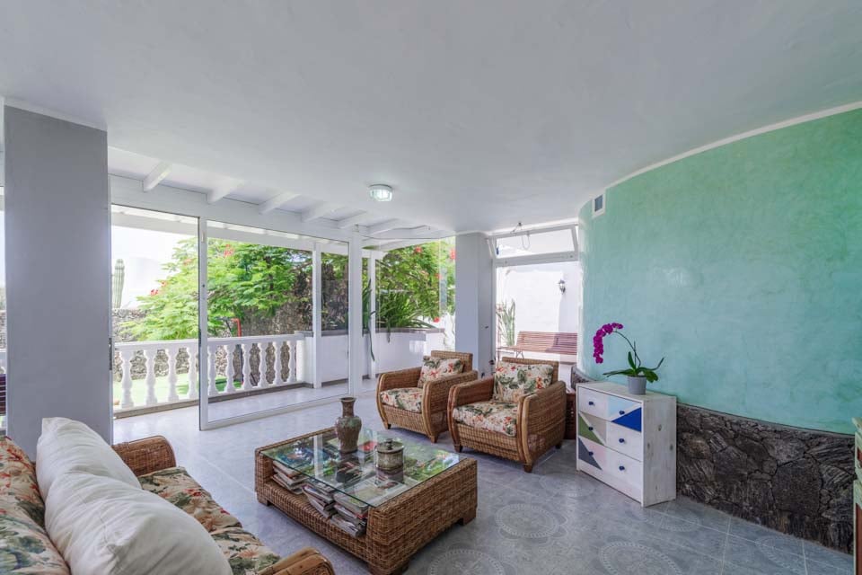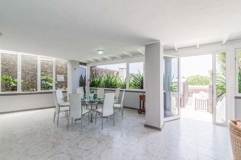 Villa Cervera is een mooie grote, ruime villa gelegen in het chique 'Los Mojones'-gebied van Puerto del Carmen. Of u nu lekker wilt ontspannen bij het zwembad of spelletjes wilt spelen met uw gezin, Villa Cervera is een geweldige plek om een onvergetelijke vakantie door te brengen. Het beschikt over een eigen fitnessruimte en diverse balspellen voor de actiezoekers. Als u liever lekker achterover leunt en geniet van de zon, kunt u genieten van het fantastische 12 meter lange zwembad met ligstoelen ernaast. Villa Cervera ligt op een prachtige locatie en biedt een schitterend uitzicht vanaf het balkon op de eerste verdieping. Overdag kunt u de zee zien en 's avonds kunt u genieten van de zonsondergang. In de buitenkeuken staat een stenen barbecue, zodat u heerlijk kunt koken en in de mooie eethoek in de openlucht kunt genieten van een feestmaal met uw dierbaren. De prachtige, grote serre heeft meerdere openslaande deuren, uitzicht naar buiten en de aangelegde tuin, waardoor het binnen- en buitenleven samenkomen. Er is genoeg ruimte voor het hele gezin. Elke verdieping heeft een eigen woonkamer en vier slaapkamers, die allemaal voorzien zijn van airconditioning voor uw comfort. Villa Cervera heeft genoeg te bieden om u te vermaken, maar als u er toch op uit wilt, bent u niet al te ver van het prachtige zandstrand. Gelegen tussen de oude en nieuwe stad van Puerto del Carmen, heeft u een onbeperkte keuze aan bars, restaurants en winkels in de buurt.