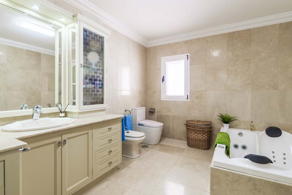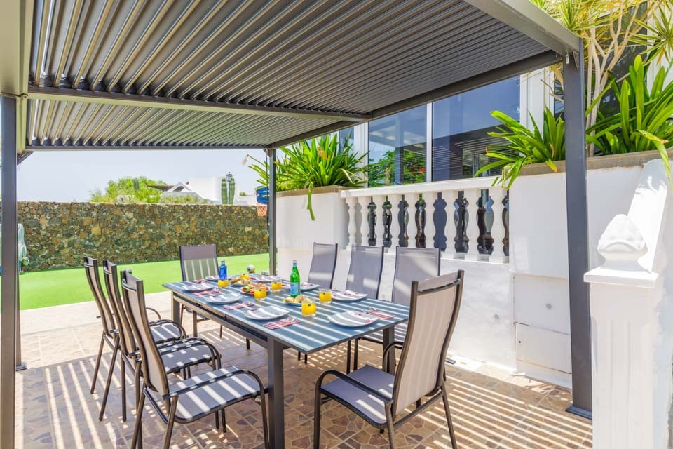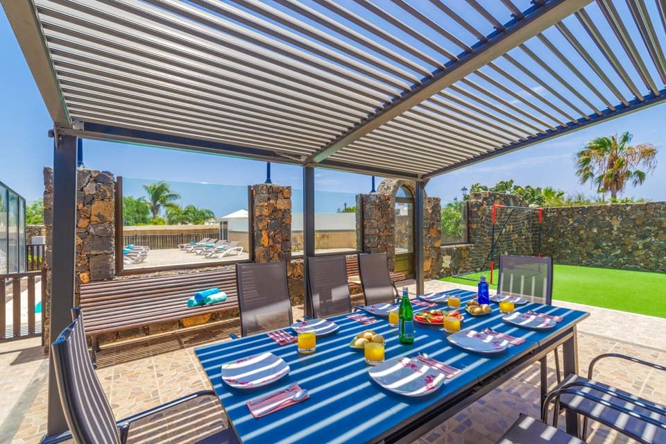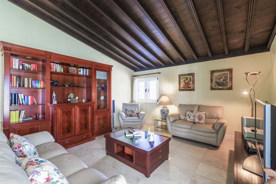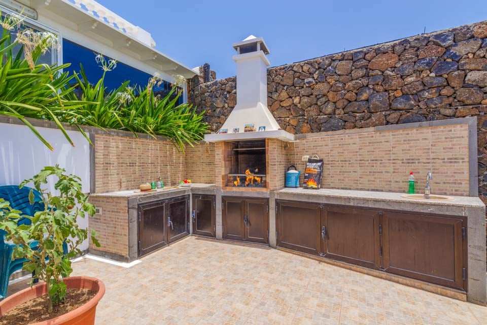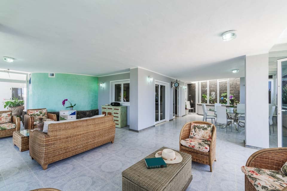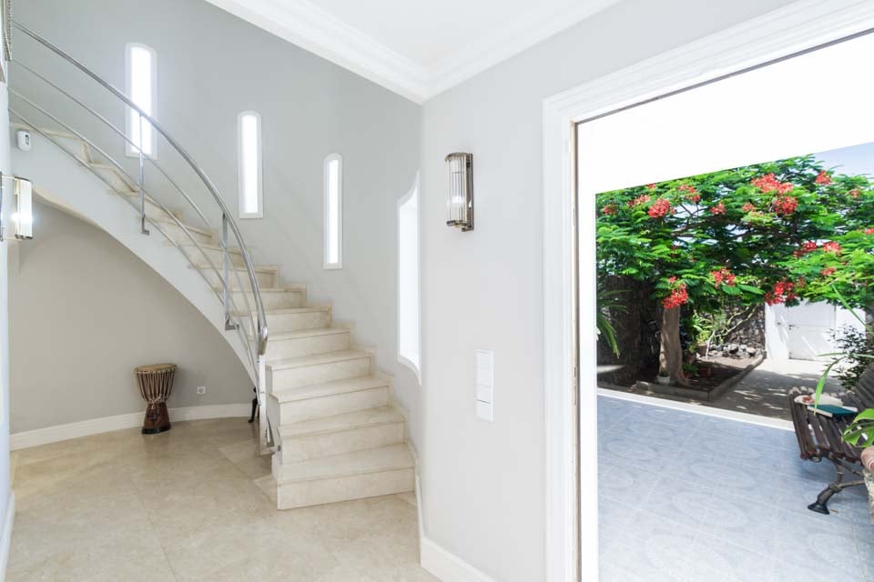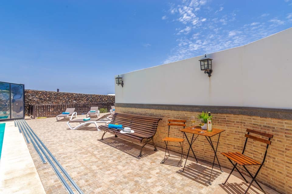 Villa Cervera is een mooie grote, ruime villa gelegen in het chique 'Los Mojones'-gebied van Puerto del Carmen. Of u nu lekker wilt ontspannen bij het zwembad of spelletjes wilt spelen met uw gezin, Villa Cervera is een geweldige plek om een onvergetelijke vakantie door te brengen. Het beschikt over een eigen fitnessruimte en diverse balspellen voor de actiezoekers. Als u liever lekker achterover leunt en geniet van de zon, kunt u genieten van het fantastische 12 meter lange zwembad met ligstoelen ernaast. Villa Cervera ligt op een prachtige locatie en biedt een schitterend uitzicht vanaf het balkon op de eerste verdieping. Overdag kunt u de zee zien en 's avonds kunt u genieten van de zonsondergang. In de buitenkeuken staat een stenen barbecue, zodat u heerlijk kunt koken en in de mooie eethoek in de openlucht kunt genieten van een feestmaal met uw dierbaren. De prachtige, grote serre heeft meerdere openslaande deuren, uitzicht naar buiten en de aangelegde tuin, waardoor het binnen- en buitenleven samenkomen. Er is genoeg ruimte voor het hele gezin. Elke verdieping heeft een eigen woonkamer en vier slaapkamers, die allemaal voorzien zijn van airconditioning voor uw comfort. Villa Cervera heeft genoeg te bieden om u te vermaken, maar als u er toch op uit wilt, bent u niet al te ver van het prachtige zandstrand. Gelegen tussen de oude en nieuwe stad van Puerto del Carmen, heeft u een onbeperkte keuze aan bars, restaurants en winkels in de buurt.