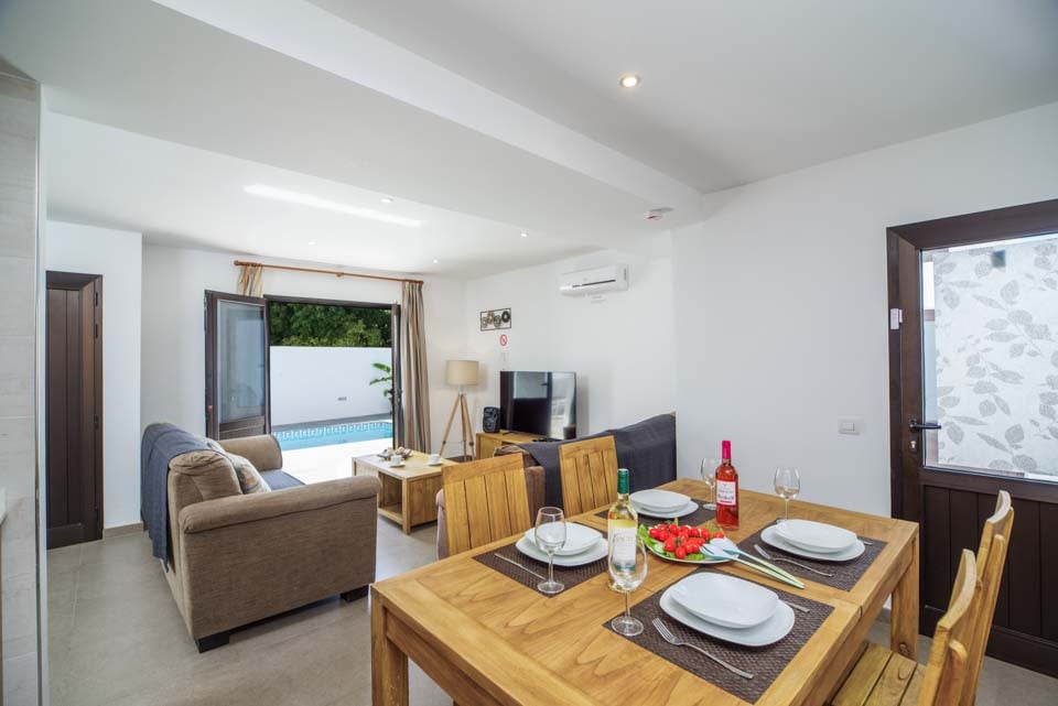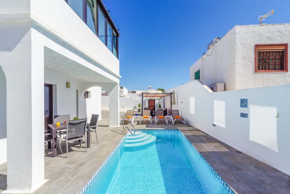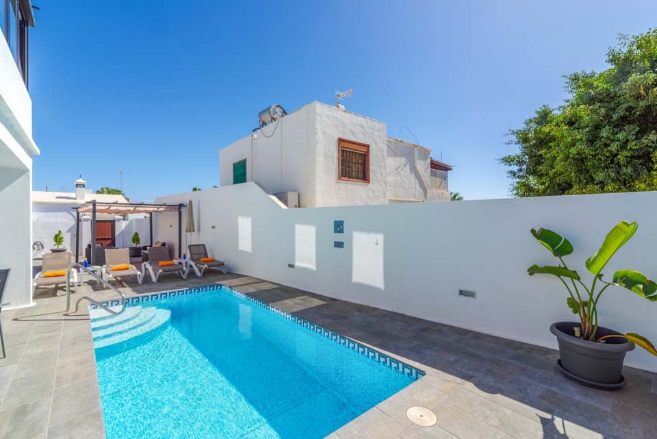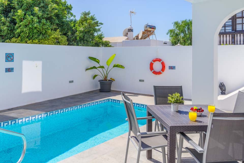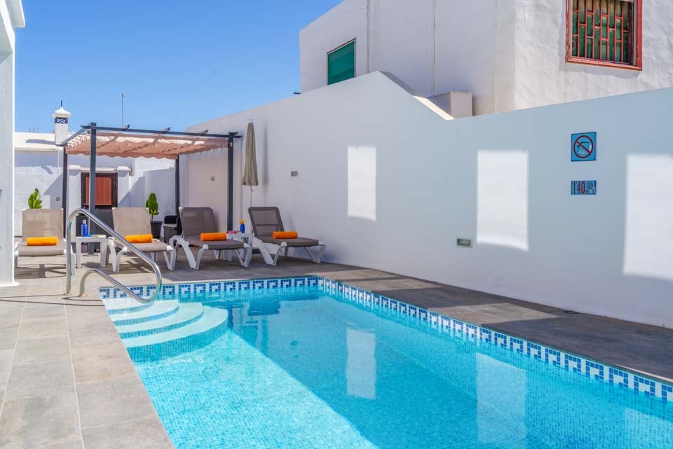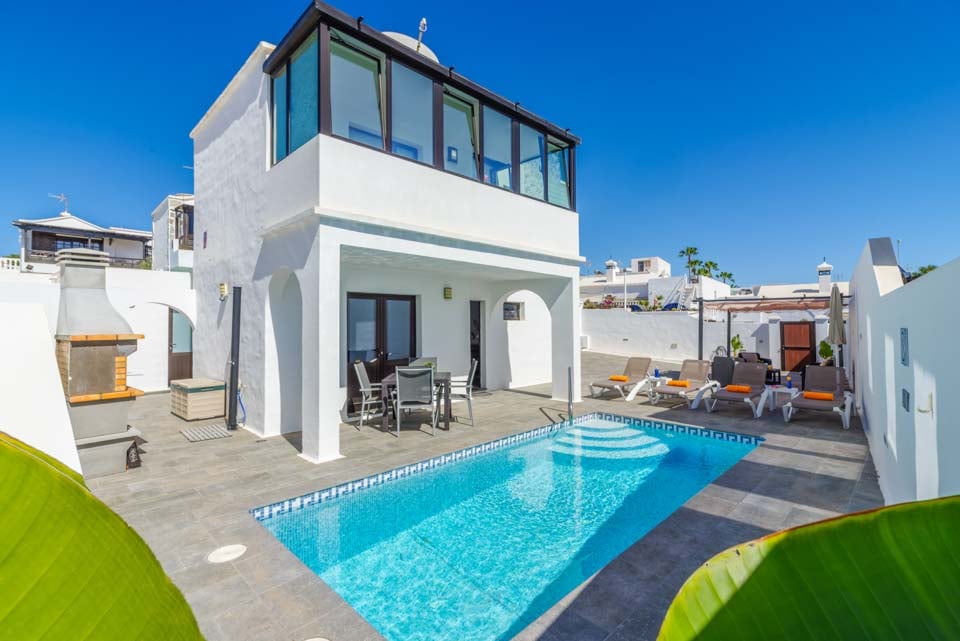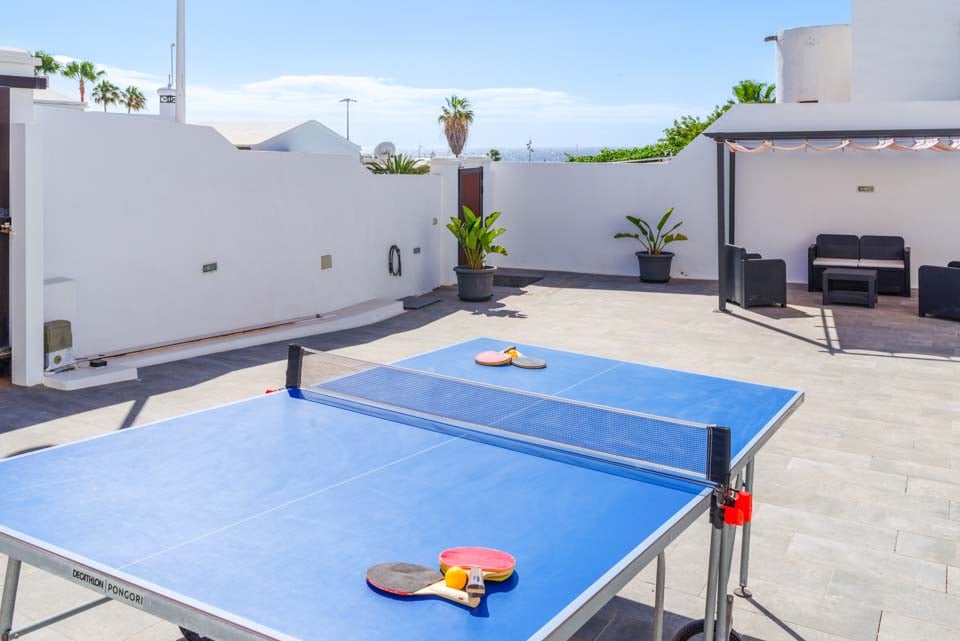 Deze prachtige woning met twee slaapkamers betekent letterlijk Villa 'Sun' en is een uitstekende keuze voor wie het hele jaar door van de zon wil genieten. Een villa die centraler ligt dan Villa Sol is lastig te vinden, aangezien lokale supermarkten, boetiekjes, restaurants en bars zich op slechts 140 meter afstand bevinden. Het zandstrand en de hoofdstraat van Puerto del Carmen zijn gemakkelijk bereikbaar vanaf de villa. Ook tijdens uw vakantie zult u zich niet vervelen, vooral omdat de villa beschikt over een verwarmd privézwembad*, eetgelegenheid in de openlucht en een tafeltennistafel voor een gezonde competitie tussen vrienden en familie.
