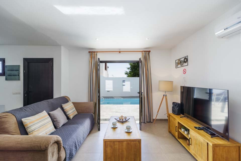 Deze villa beschikt over twee slaapkamers met airconditioning en is ideaal voor maximaal vier gasten. Beide slaapkamers bevinden zich op de eerste verdieping en hebben toegang tot een gedeelde serre op de eerste verdieping, met een prachtig uitzicht op zee en de Atlantische Oceaan. Als je goed kijkt, kun je zelfs het buureiland Fuerteventura zien. De villa is volledig uitgerust met alle apparatuur die u van een zelfstandige vakantie mag verwachten, waaronder een wasmachine, vaatwasser en smart-tv.