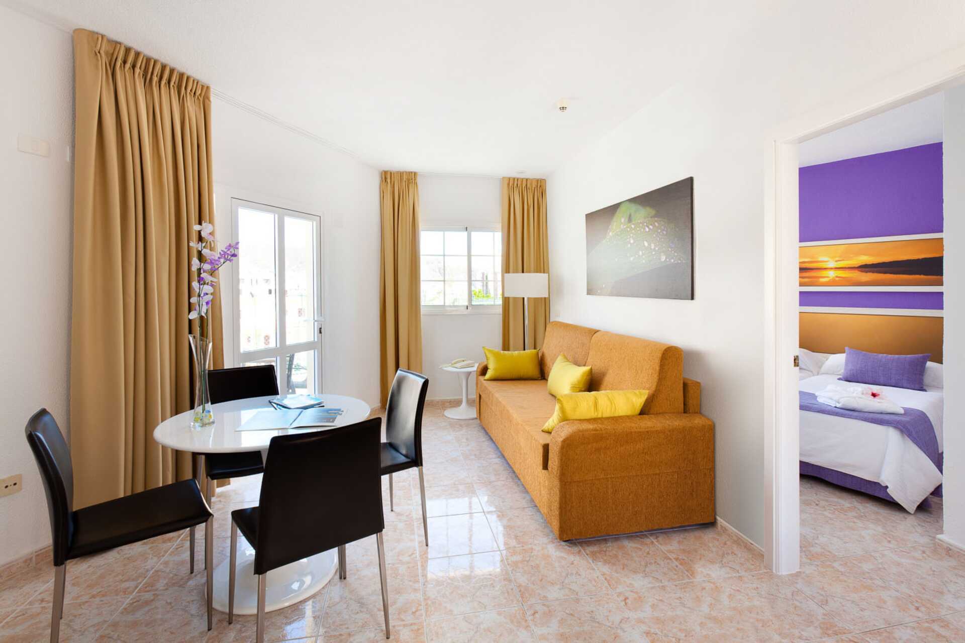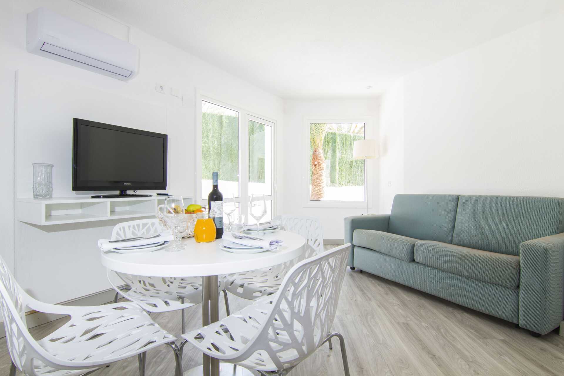 Tweekamerappartement met balkon of terras. Een slaapkamer en gecombineerde woonkamer en minikeuken. Een tweepersoonsbed of twee eenpersoonsbedden. Mogelijkheid voor extra bedden in een slaapbank. Minikeuken met koelkast, kookplaat, magnetron, waterkoker, koffiezetapparaat, broodrooster en basiskeukengerei. Wifi inbegrepen. Kluisje tegen betaling. TV met internationale zenders. Badkamer met douche en toilet. Schoonmaak 3 keer/week.