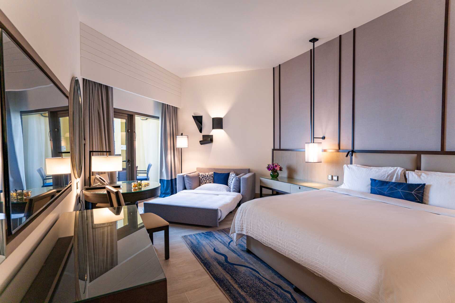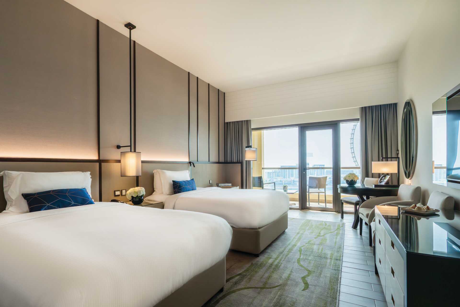 Deluxe kamer met balkon en uitzicht op Ain Dubai. Een tweepersoonsbed of twee eenpersoonsbedden. Mogelijkheid voor extra bed in eenpersoonsbed. Wifi, airconditioning en kluisje inbegrepen. Minibar. Waterkoker en koffie en thee. Badjas. Föhn. Badkamer met bad of douche en toilet. Schoonmaak 7 keer/week. Kinderen jonger dan twee jaar in het maximum aantal personen op de kamer.